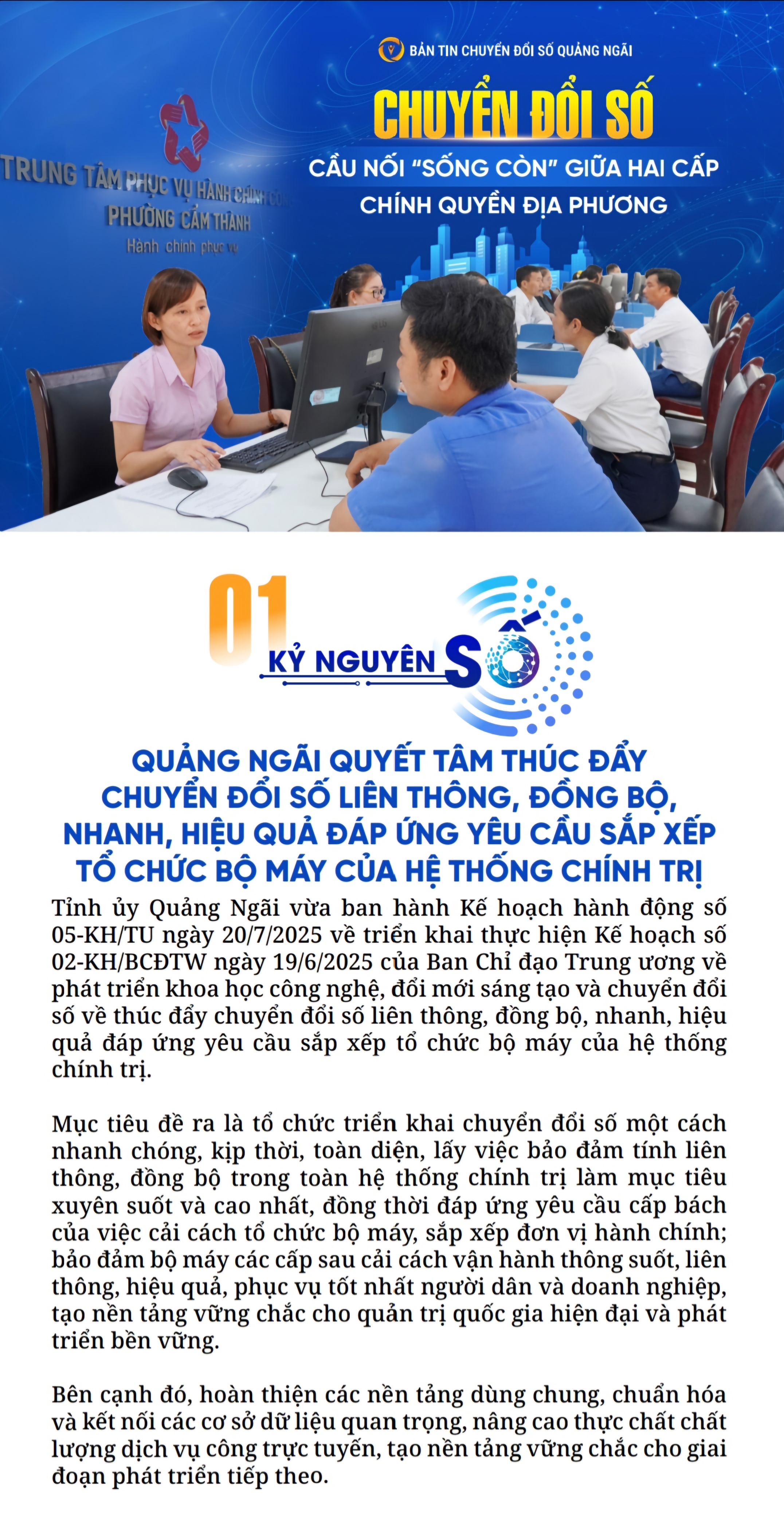 Chuyên trang Chuyển đổi số tỉnh Quảng Ngãi trân trọng giới thiệu Bản tin Chuyển đổi số, số 5 năm 2025 với chủ đề "Chuyển đổi số - Cầu nối "sống còn" giữa hai cấp chính quyền địa phương".